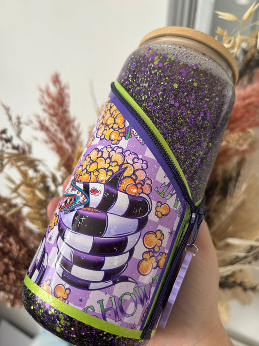 Beetlejuice inspired Snow Globe Zipper Tumbler