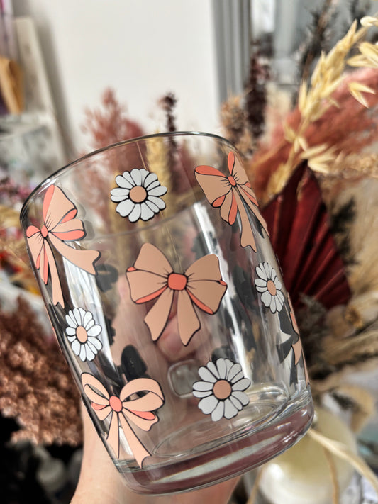 Bows & Daisy Glass Handled Mug