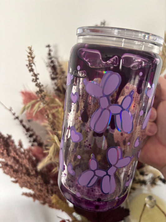 Purple Balloon Dog Lava Drip Glass Tumbler