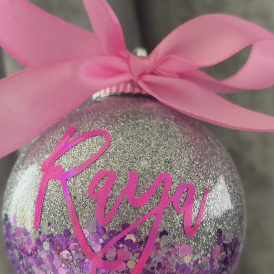 Please add name and colour scheme to personalisation box, if you would like 2 glitters in a bauble to make an ombré effect please add in box also